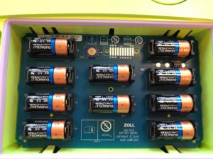 Les batteries de Zoll sont des batteries ordinaires (CR123) que nous vendons par lot de 10 piles. En ouvrant le couvercle à l’arrière du défibrillateur (avec une pièce de monnaie) vous pouvez facilement remplacer les batteries vous-même. Attendez que le défibrillateur indique: “Appuyez sur le bouton si les batteries sont neuves”. Ensuite, appuyez sur le bouton entre les 2 rangées de batteries. Vous pouvez refermer le couvercle et le défibrillateur est prêt à l’emploi .